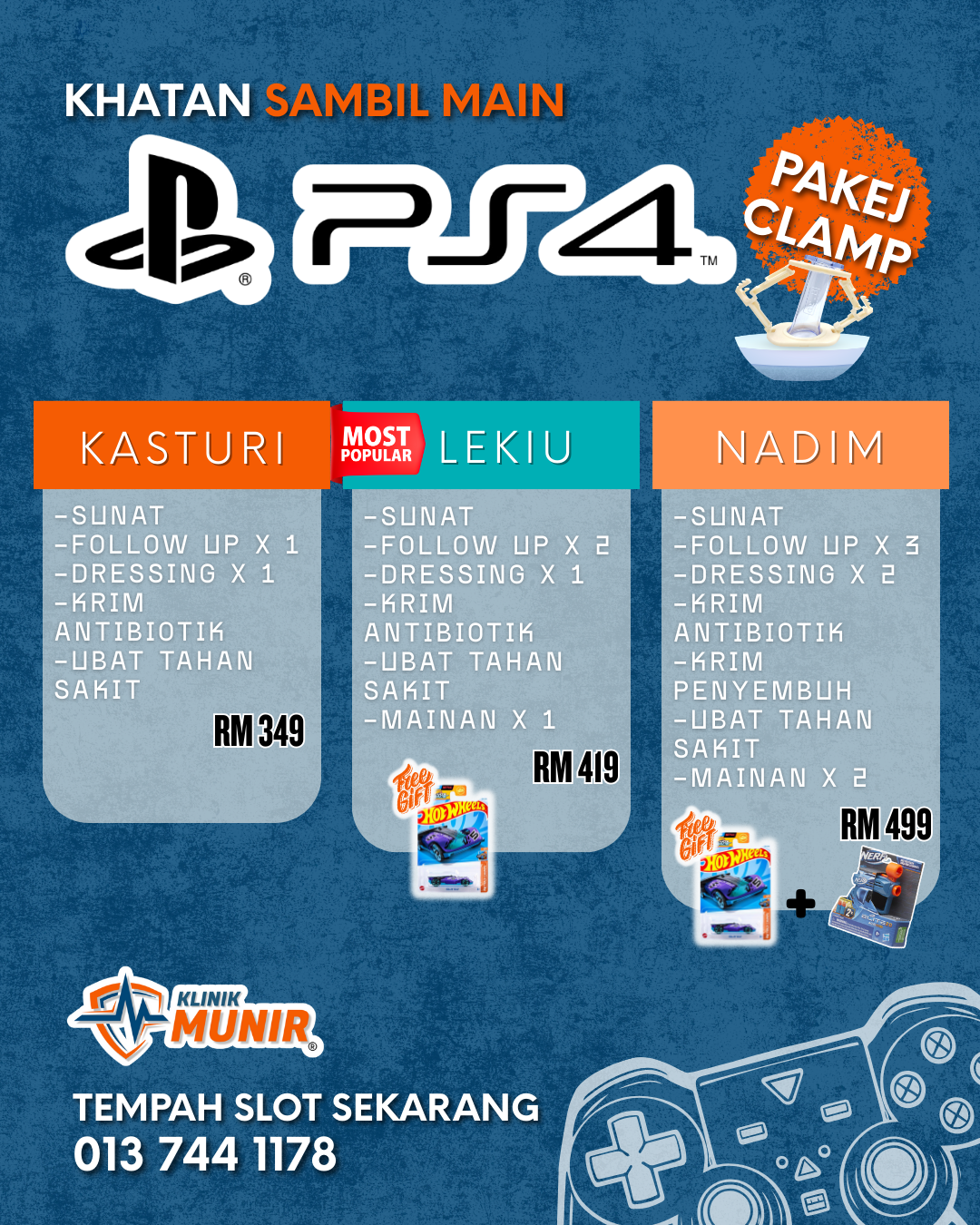 Package Jebat is our most popular choice at Klinik Munir! The procedure is performed by qualified doctors with modern & safe methods, plus aftercare to ensure a smoother recovery. Children can ease their fears while playing PS4 in our waiting room 🎮