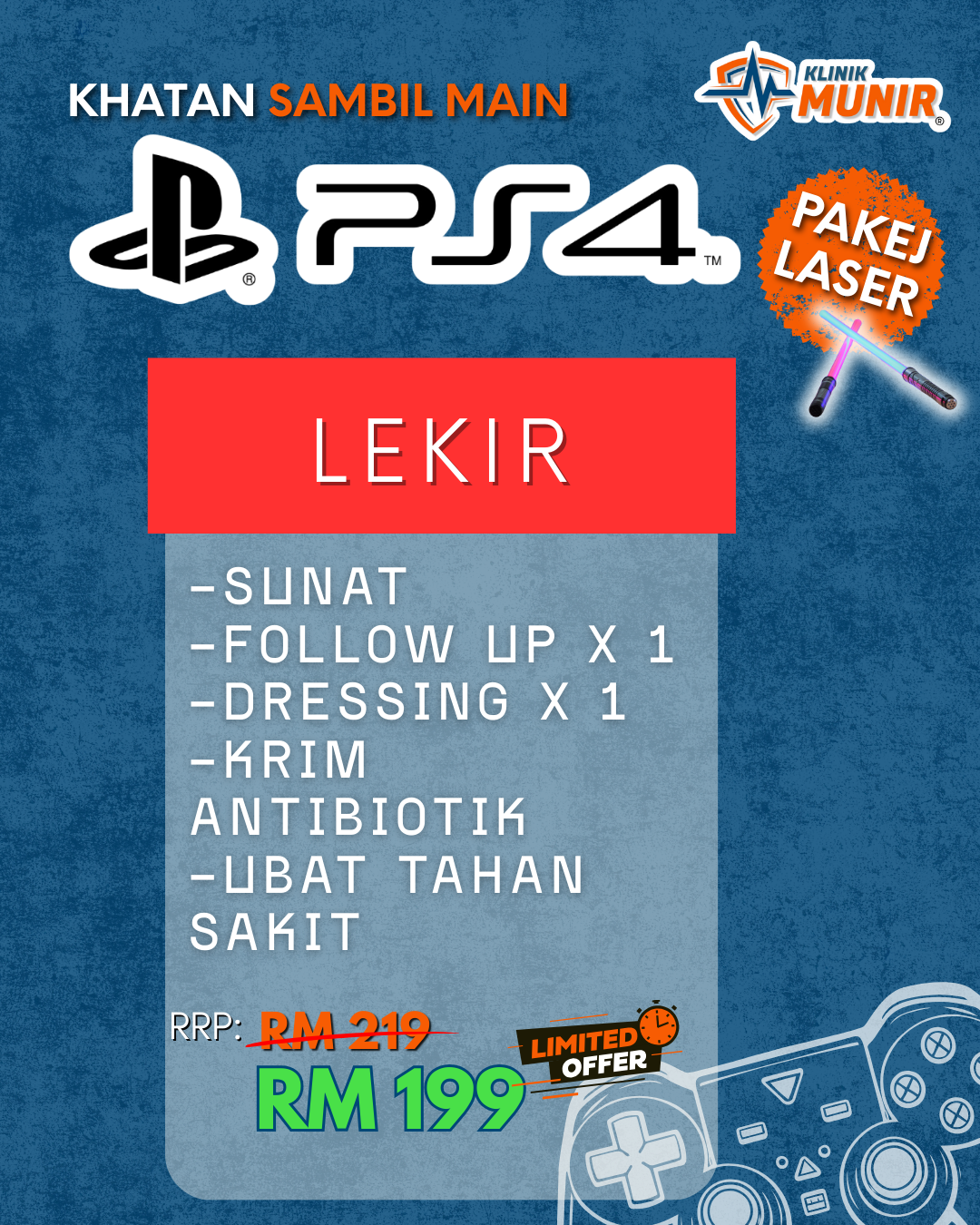 Pakej Lekir ialah pakej asas yang ringkas & selesa. Prosedur dijalankan oleh doktor bertauliah dengan kaedah moden & selamat. Anak boleh hilangkan rasa takut sambil main PS4 di bilik menunggu 🎮