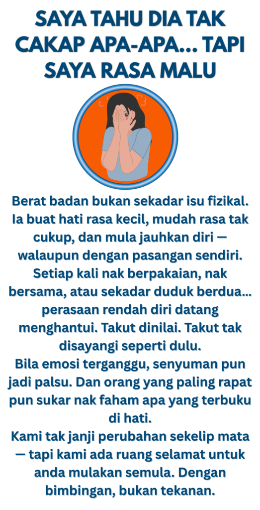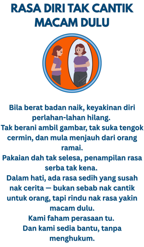 Anda tidak keseorangan. Cabaran di atas ada puncanya — hormon, tidur, ubat, pemakanan & tingkah laku. Berita baik: dengan penilaian klinikal & pelan peribadi, perubahan boleh jadi lebih mudah, selamat dan konsisten.